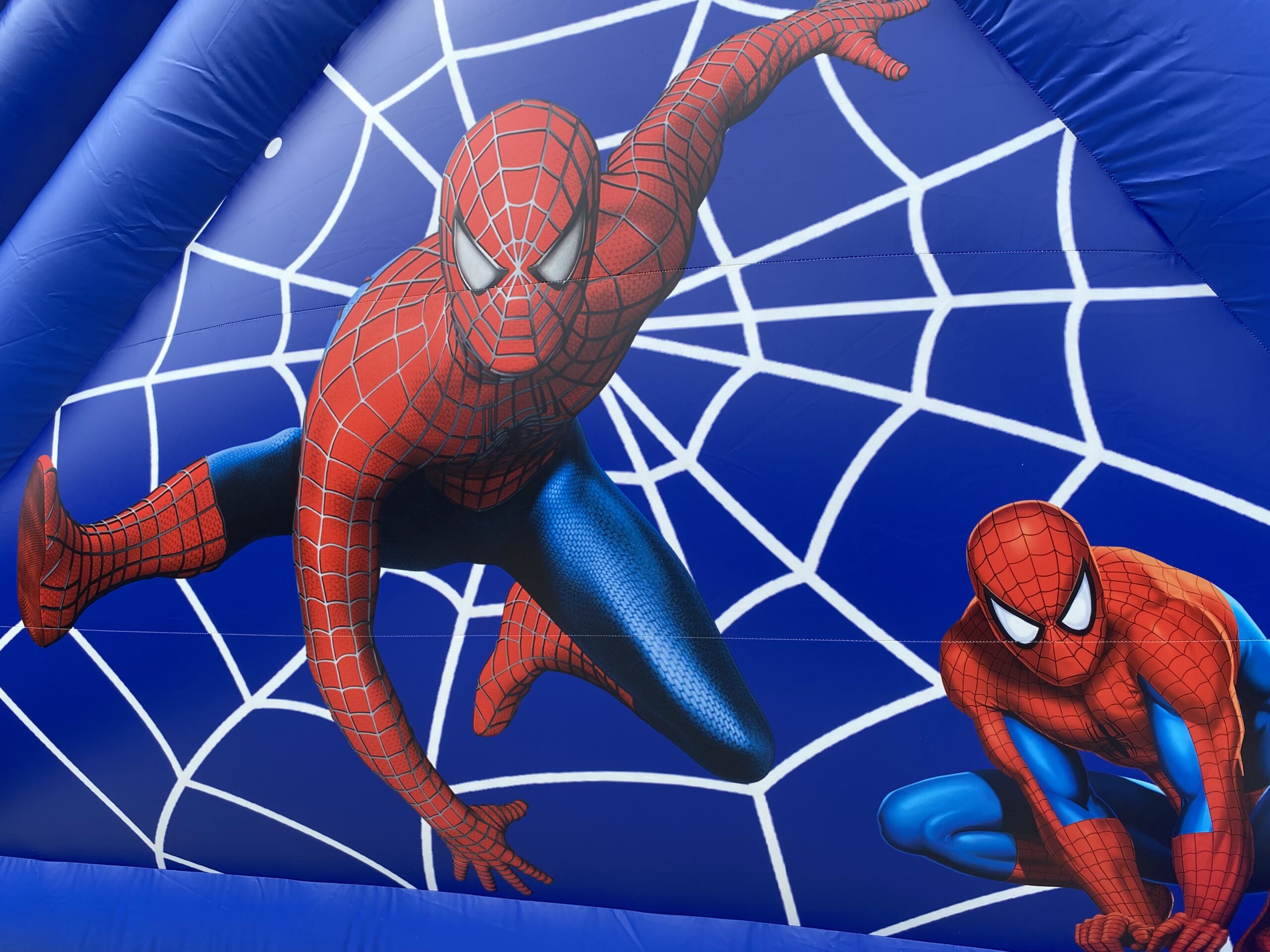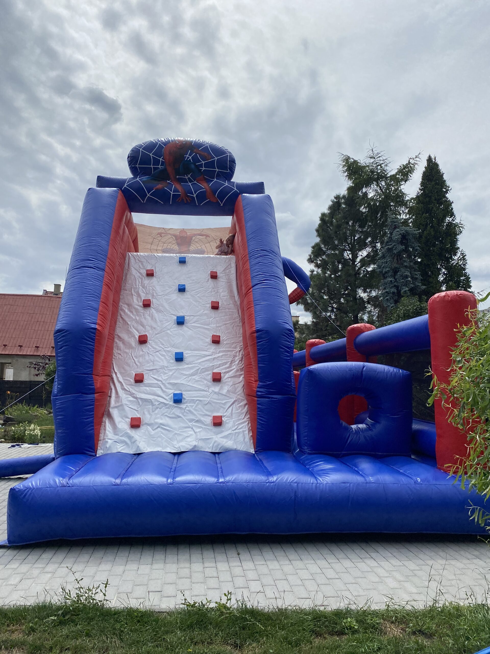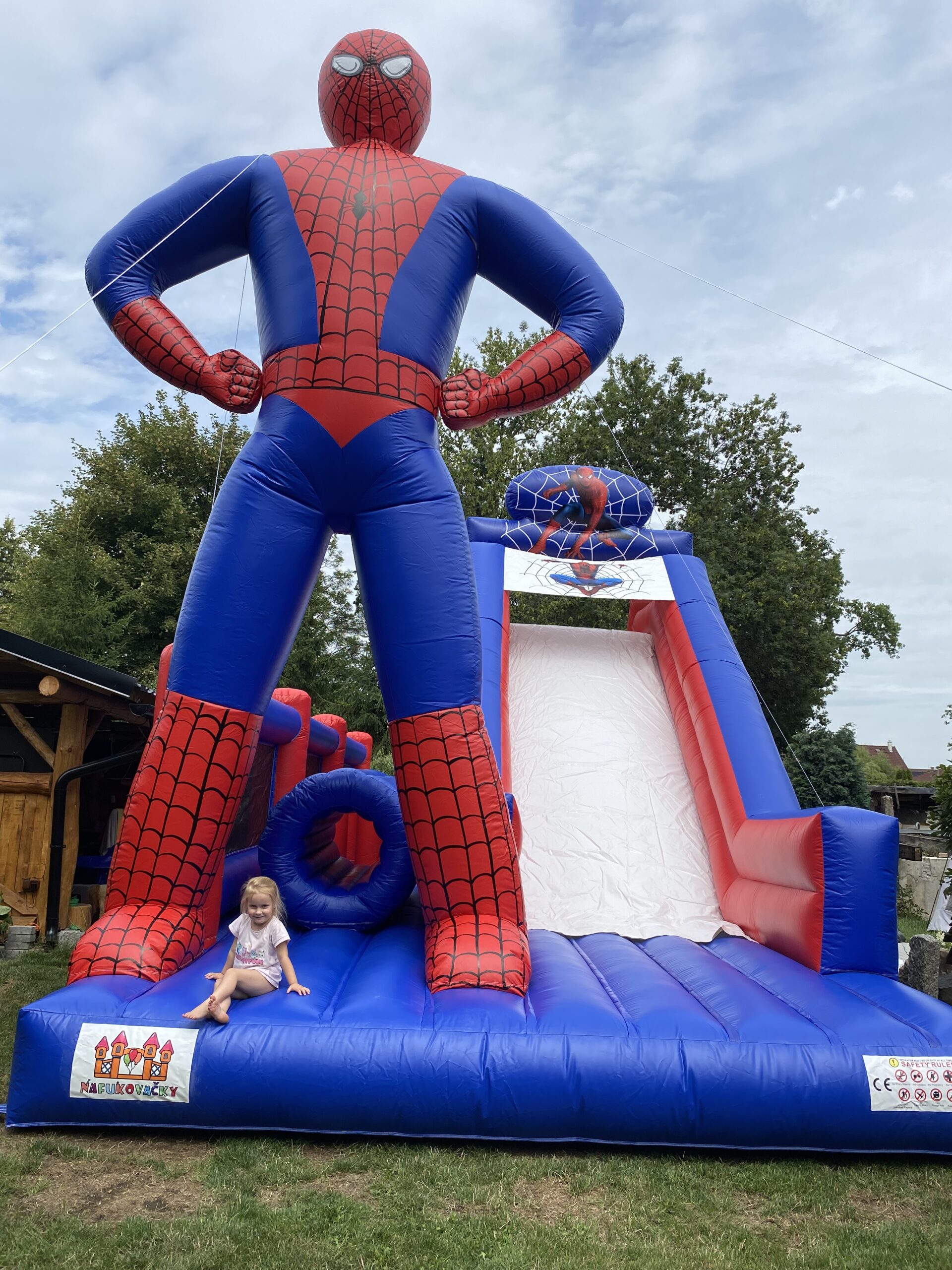 Superman, Batman i Spiderman u Vás. Superhrdinský hrad se skákací plochou a skluzavkou.