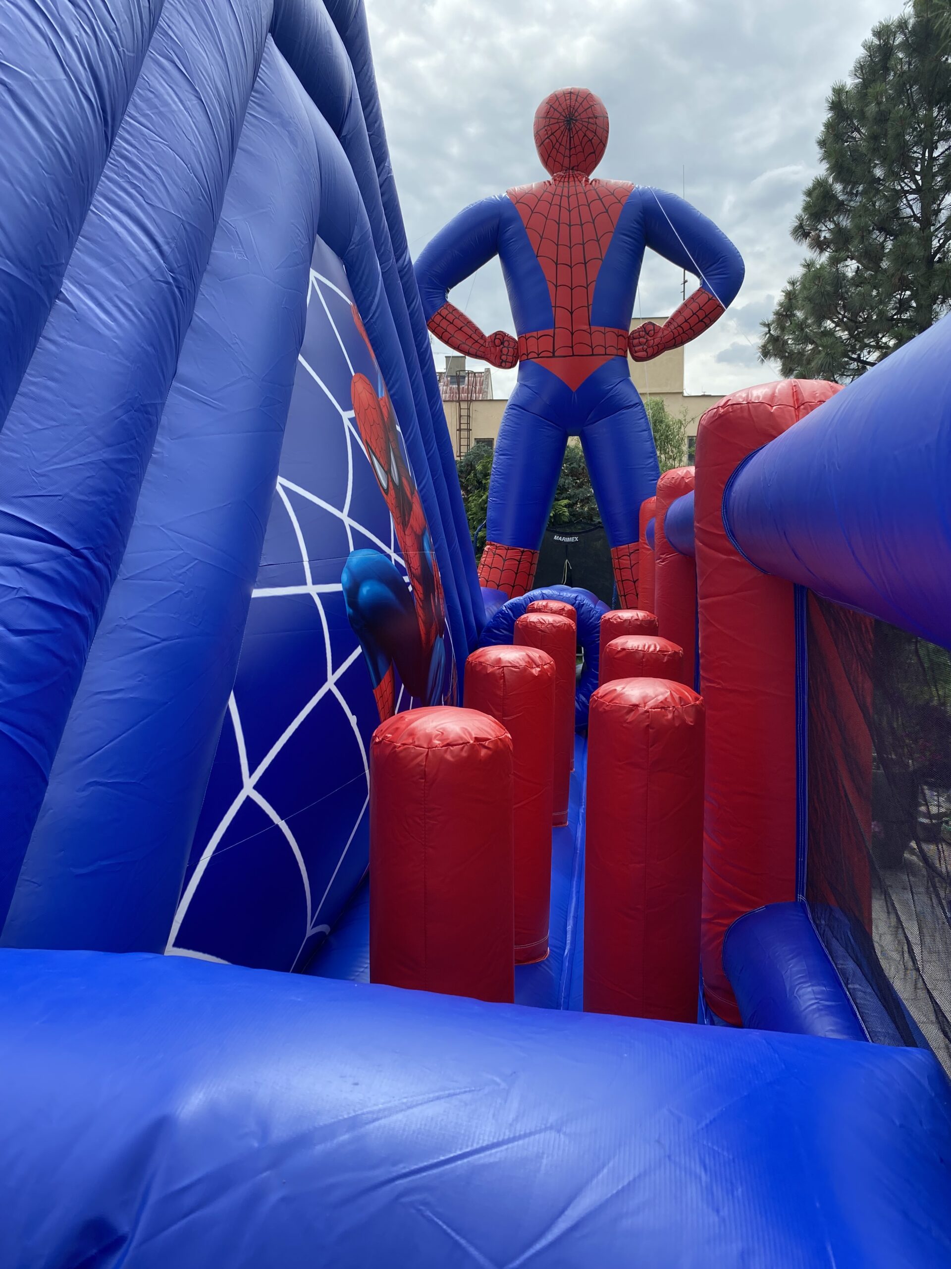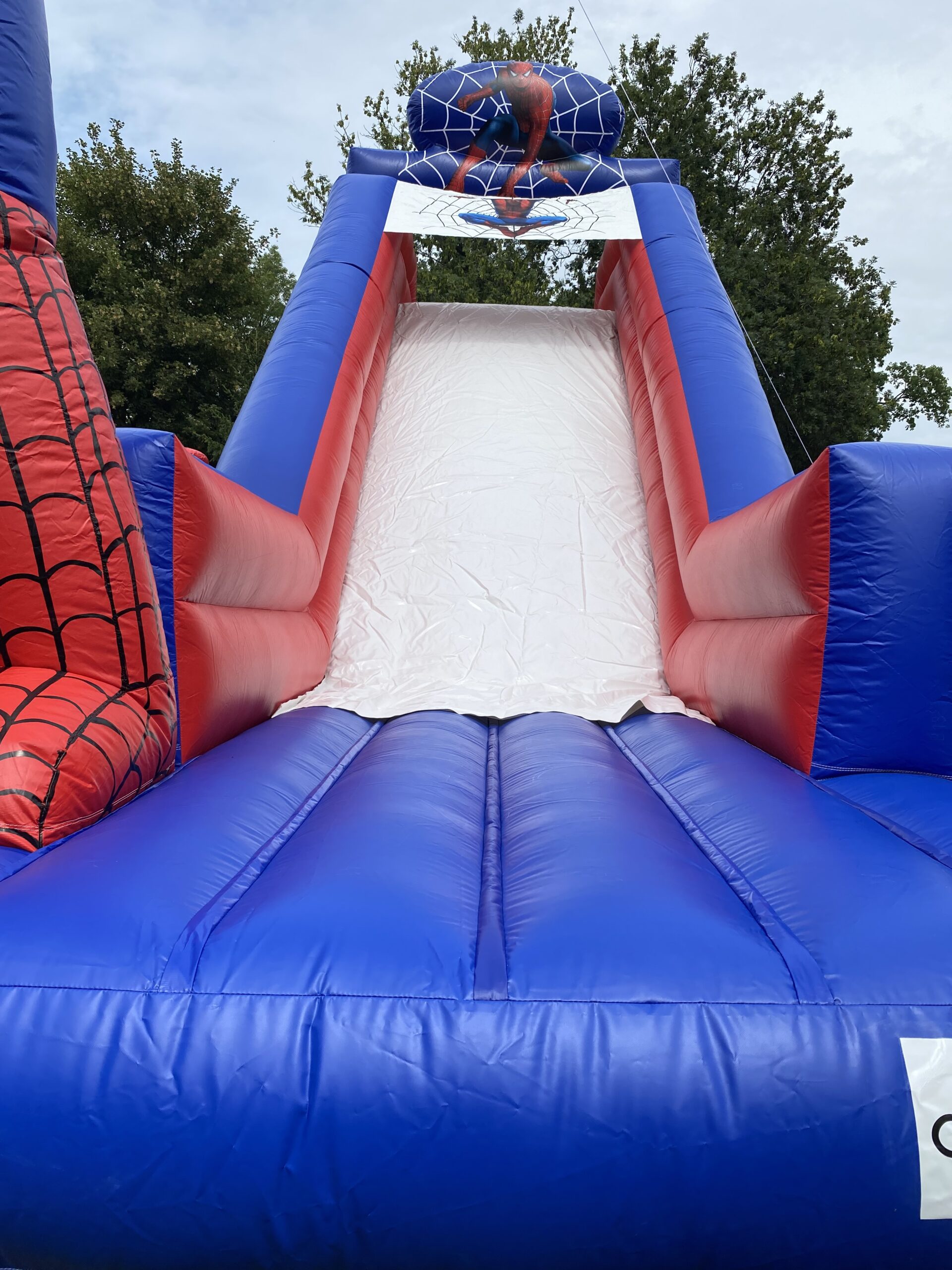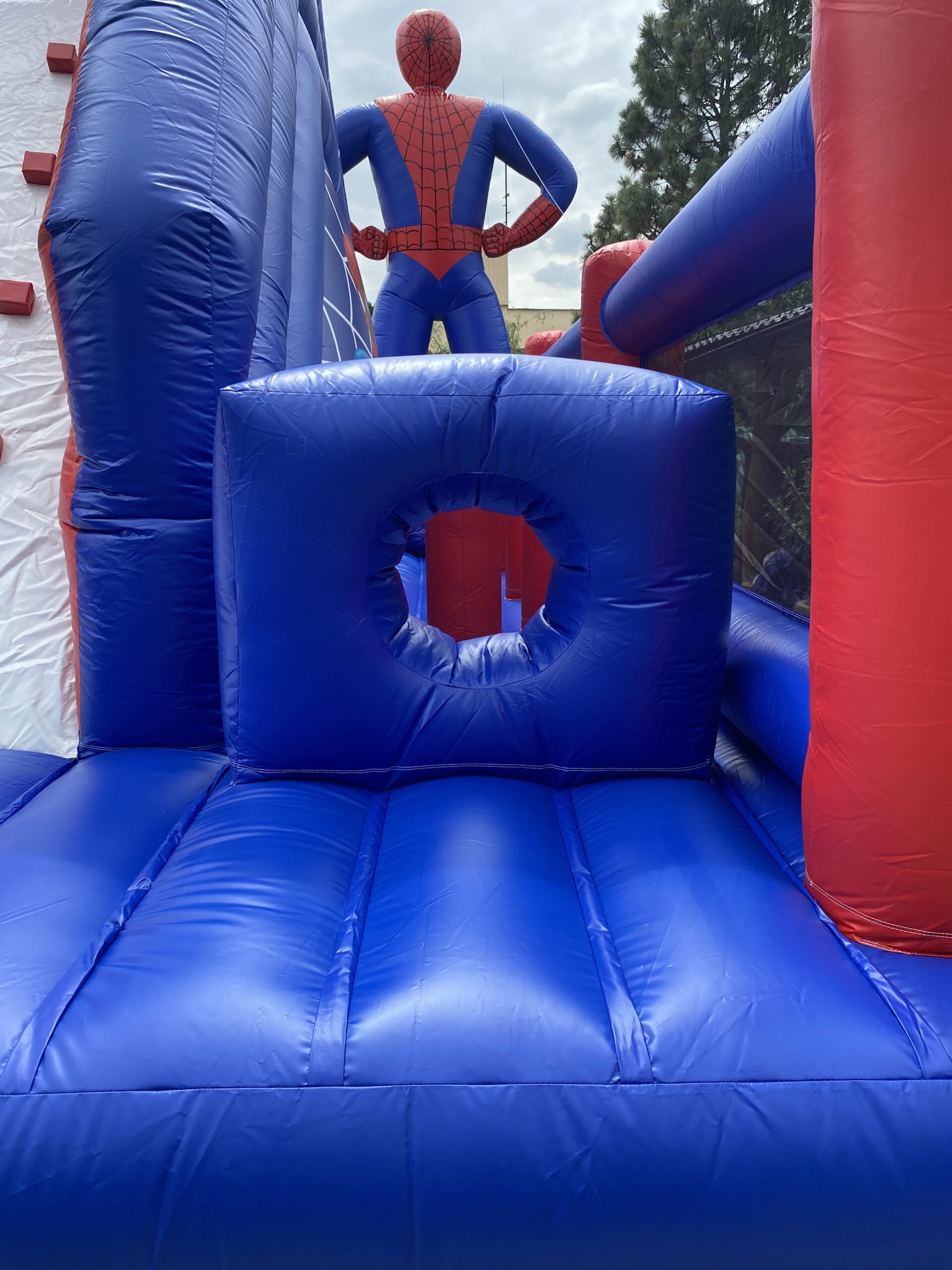 Superman, Batman i Spiderman u Vás. Superhrdinský hrad se skákací plochou a skluzavkou.